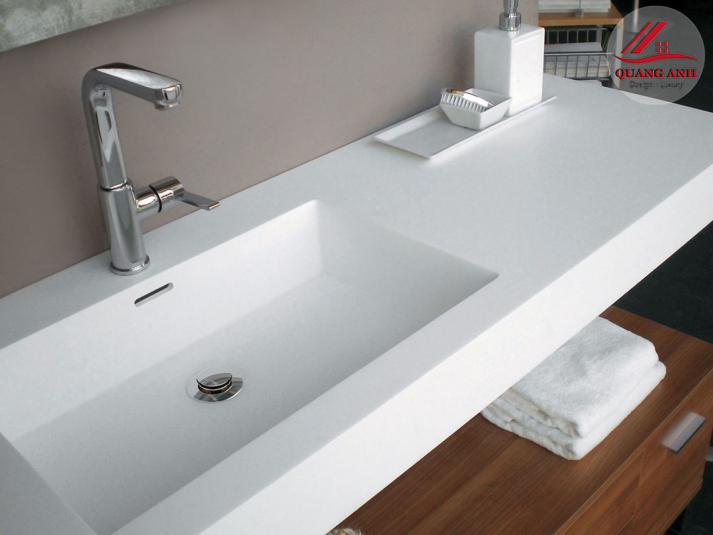 Lavabo âm bàn: Phần chậu được lắp chìm trong mặt bàn, mang lại vẻ đẹp gọn gàng, tinh tế và dễ dàng lau chùi.