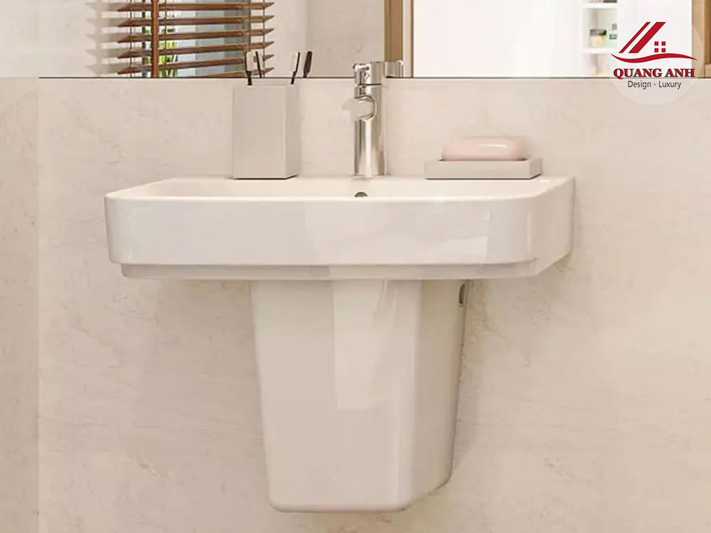 Lavabo nhựa cao cấp: Nhẹ, giá rẻ, chống ố vàng, phù hợp phòng tắm nhỏ.