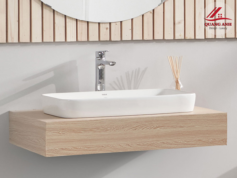 Lavabo gỗ: Ấm áp, tự nhiên, phủ chống thấm, hợp phong cách Bắc Âu, Nhật Bản.