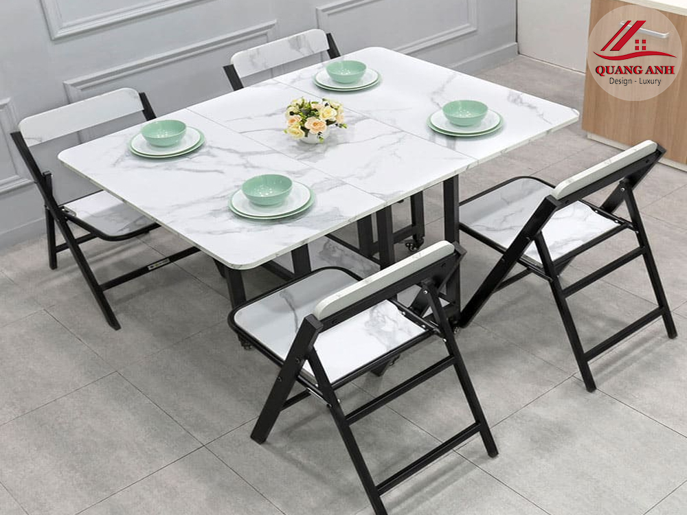 Sở hữu một chiếc bàn ăn thông minh có thể gấp gọn hoặc mở rộng linh hoạt mang lại sự tiện nghi tối đa cho không gian sống hiện đại. Trong những dịp lễ, Tết hay khi gia đình có khách ghé thăm, chiếc bàn này sẽ trở thành giải pháp hoàn hảo giúp bạn dễ dàng mở rộng diện tích sử dụng mà không tốn thêm không gian cố định.