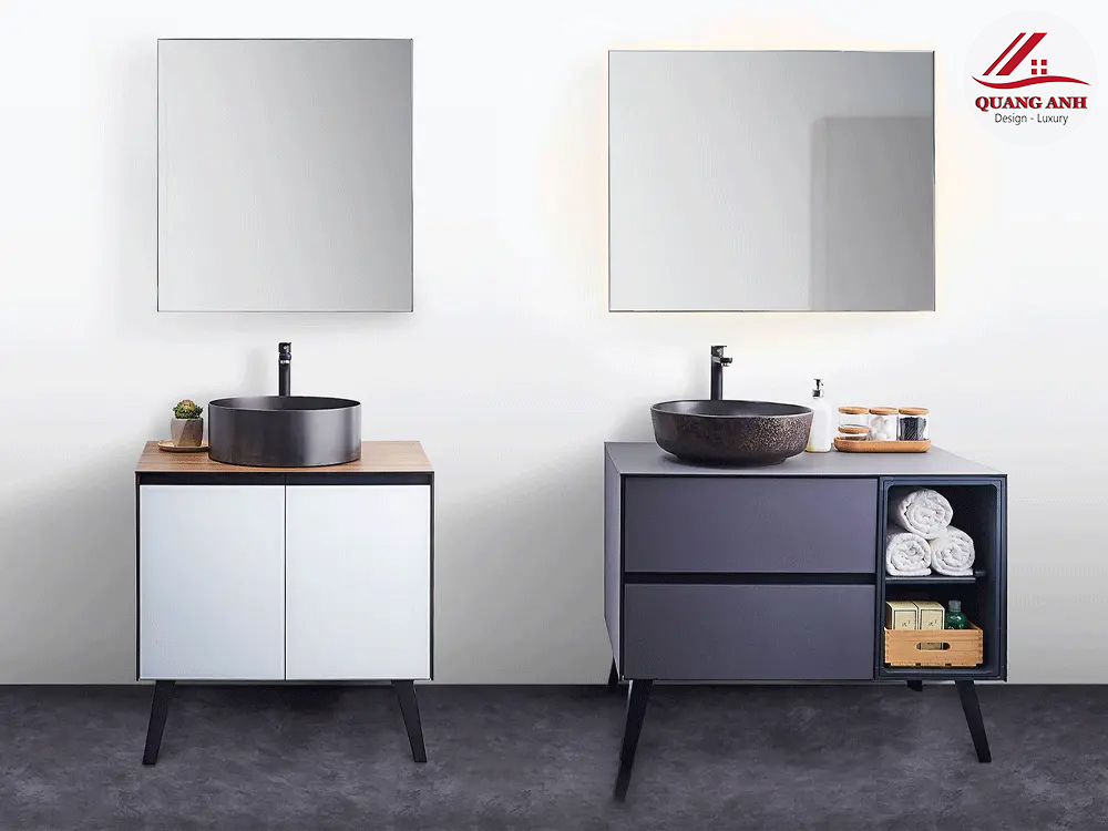 Tủ để sàn thường có kích thước lớn và sức chứa rộng rãi hơn so với tủ treo. Kiểu dáng vững chắc, nhiều ngăn kéo và kệ bên trong giúp bạn bảo quản khăn tắm, đồ dùng cá nhân hoặc mỹ phẩm một cách ngăn nắp. Mẫu tủ này đặc biệt phù hợp với phòng tắm có diện tích rộng và nhu cầu lưu trữ cao.