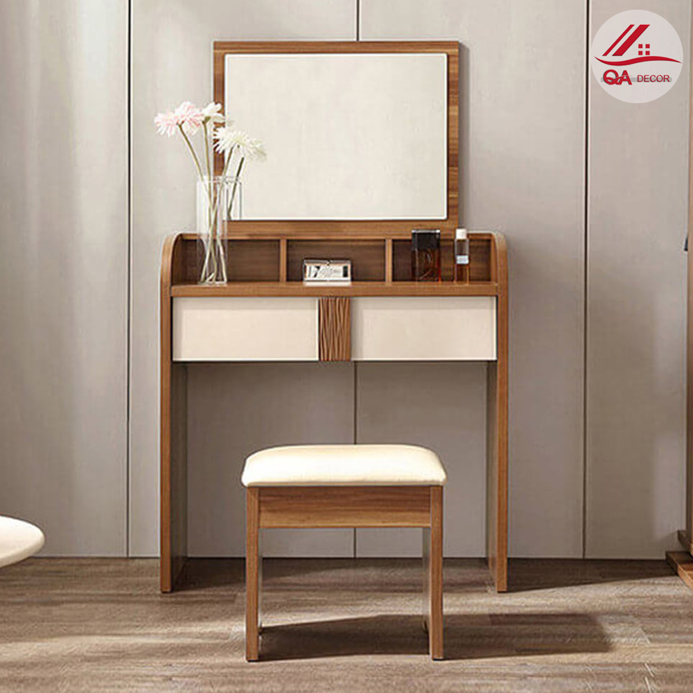 Một chiếc bàn trang điểm gỗ công nghiệp đơn giản không chỉ đáp ứng nhu cầu làm đẹp hằng ngày mà còn góp phần mang lại sự gọn gàng, thanh lịch cho không gian sống. Với thiết kế tối giản, chất liệu bền đẹp và công năng tiện ích, sản phẩm từ Quang Anh Decor phù hợp hoàn hảo với nhiều phong cách thiết kế nội thất phòng ngủ hiện đại.