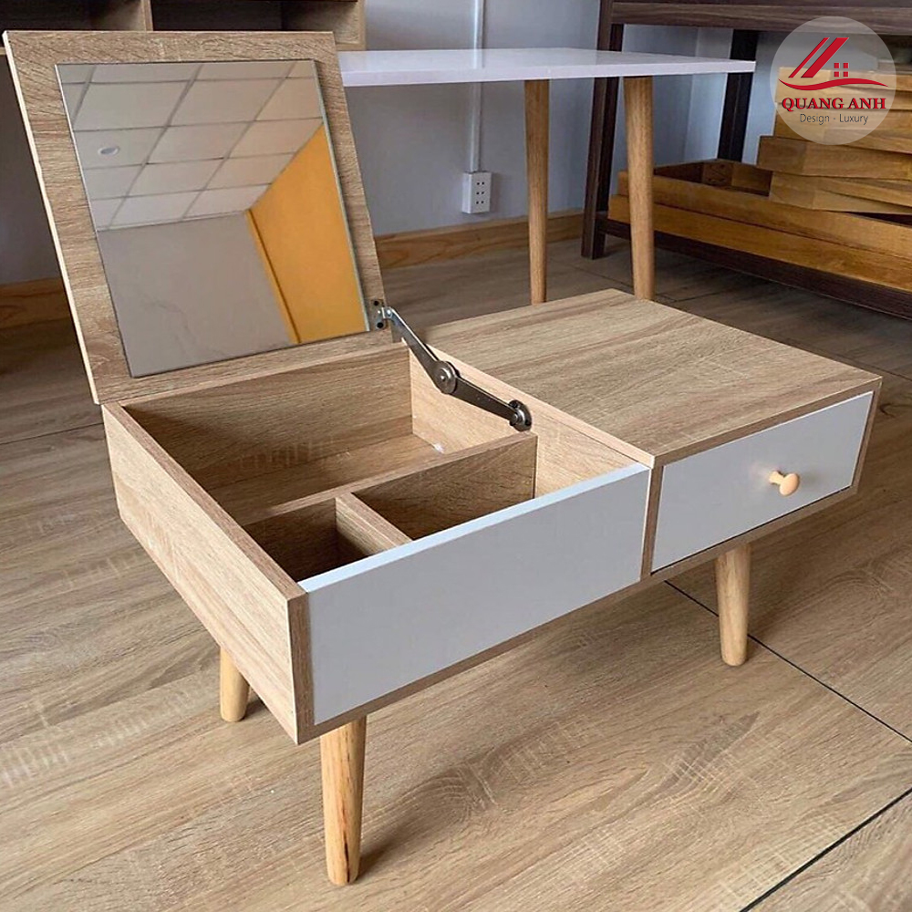 Bàn trang điểm gỗ gương gập mini là giải pháp lý tưởng cho những ai yêu thích sự tiện dụng, nhỏ gọn nhưng vẫn muốn giữ nét hiện đại trong không gian sống. Với thiết kế gương gập thông minh, ngăn chứa rộng rãi và chất liệu gỗ tự nhiên kết hợp gam màu sáng, sản phẩm vừa mang tính thẩm mỹ vừa tối ưu công năng.