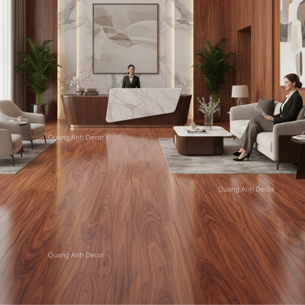 - Độ dày 12mm – kết cấu chắc chắn, chịu lực tốt: Phù hợp với khu vực có mật độ đi lại cao như phòng khách, showroom hoặc văn phòng làm việc.