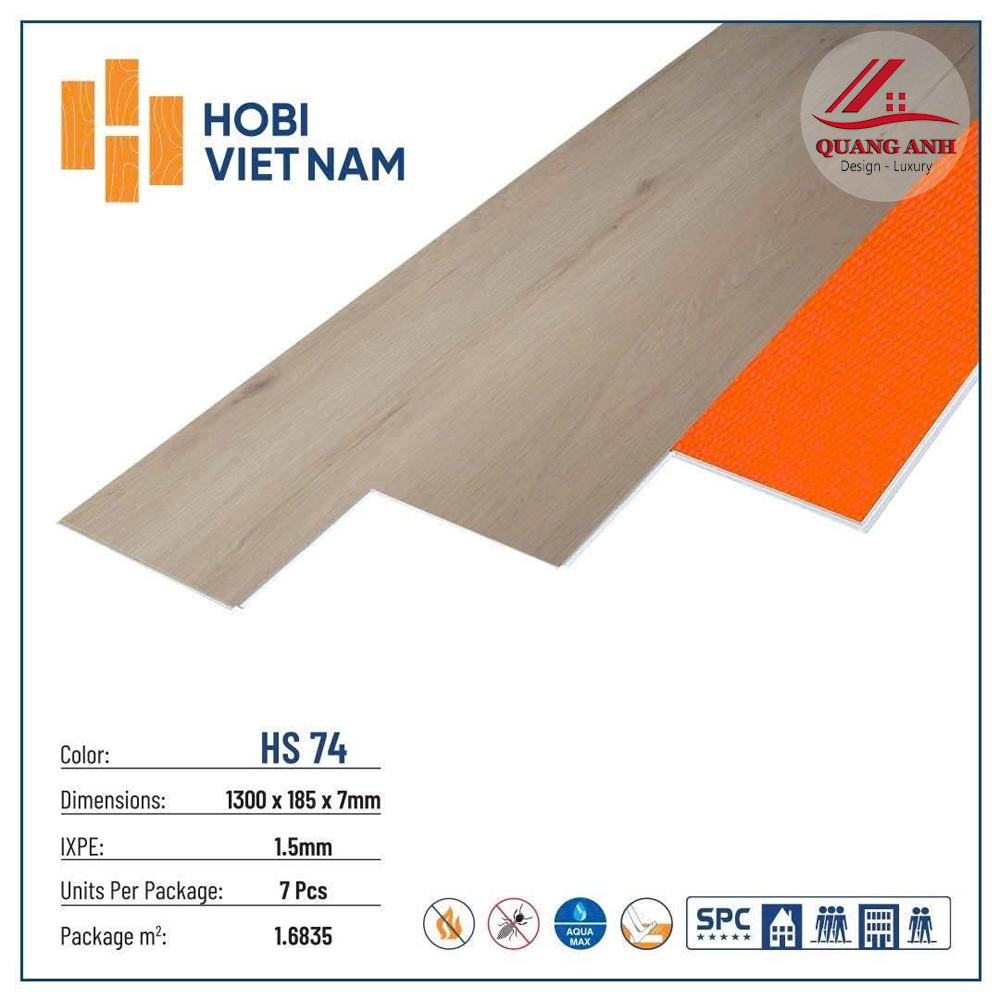 - Chống mối mọt, côn trùng: Với khả năng kháng mối mọt hiệu quả, sàn HOBI HS74 luôn bền đẹp và ổn định theo thời gian, đặc biệt thích hợp với khí hậu nhiệt đới ẩm của Việt Nam.