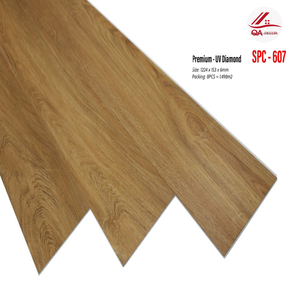 Sàn Nhựa Morser 6mm – C607 là mẫu sàn nhựa cao cấp với tông màu nâu vàng tự nhiên, vân gỗ sắc nét, mềm mại, giúp không gian trở nên ấm cúng, sang trọng nhưng vẫn trẻ trung, tươi mới. Dòng màu này rất phù hợp với các phong cách nội thất hiện đại, Scandinavian, Japandi hoặc những không gian yêu thích sự tinh tế, nhẹ nhàng. Sàn có độ dày 6mm (gồm cốt SPC 5mm + đế cao su IXPE 1mm), lõi nhựa nguyên sinh kết hợp bột đá SPC mật độ cao, bề mặt phủ lớp UV Diamond chống trầy xước, chống bám bẩn, giúp duy trì màu sắc bền đẹp lâu dài. Thiết kế hèm khóa thông minh giúp lắp đặt dễ dàng, vệ sinh và bảo trì thuận tiện.