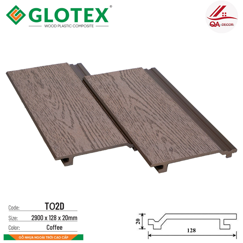 Tấm ốp gỗ nhựa ngoài trời Glotex – TO2D màu Coffee là dòng vật liệu WPC cao cấp chuyên dùng cho các hạng mục ngoại thất, có khả năng chống chịu thời tiết vượt trội. Với thiết kế dạng 2 sóng tròn mềm mại, kết hợp bề mặt màu nâu cà phê trầm ấm, sản phẩm mang lại vẻ đẹp hiện đại nhưng vẫn gần gũi, phù hợp với nhiều phong cách kiến trúc từ cổ điển đến tối giản. Cấu tạo chắc chắn, kích thước tiêu chuẩn, bề mặt vân gỗ mịn giúp TO2D-Coffee vừa đảm bảo tính thẩm mỹ vừa duy trì độ bền bỉ theo thời gian.