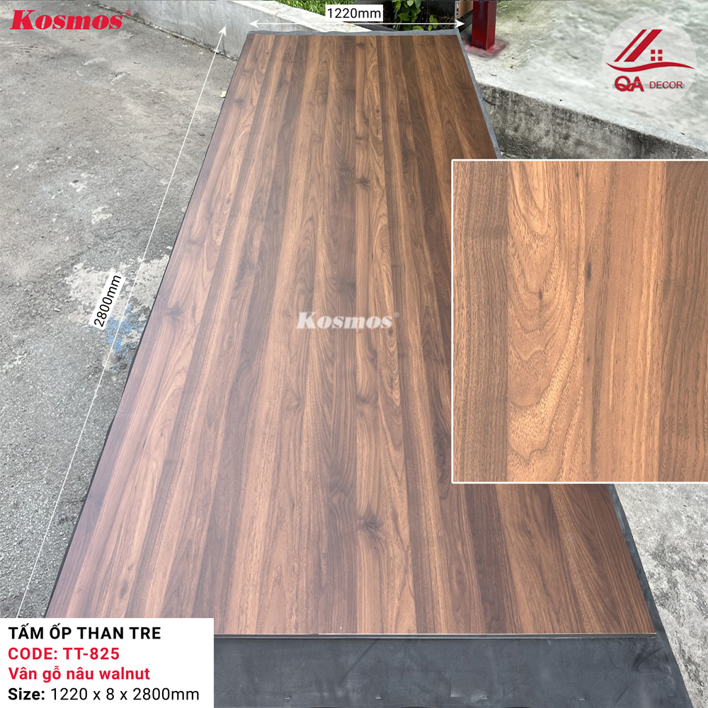 Với kích thước lớn 1220 x 2800mm và độ dày 8mm, sản phẩm hỗ trợ thi công nhanh trên các mảng lớn, giảm thiểu mối nối và đảm bảo tính thẩm mỹ đồng bộ. TT-825 là lựa chọn lý tưởng cho các công trình yêu cầu cao về độ bền, tính thẩm mỹ và cảm giác nhẹ nhàng, thanh lịch.