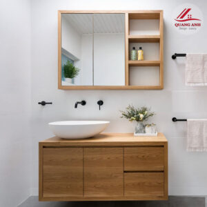 - Gương tủ tiện ích: Tích hợp gương trượt kèm ngăn lưu trữ bên trong, giúp cất giữ mỹ phẩm và vật dụng cá nhân một cách khoa học, tiện lợi.