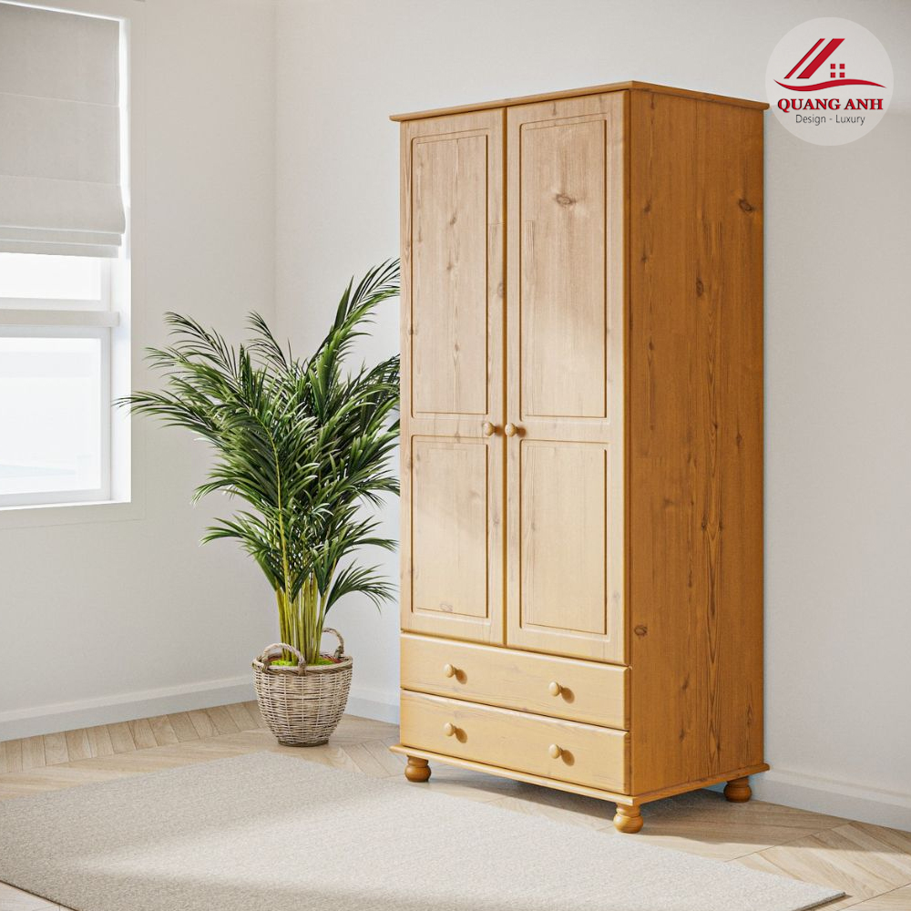 Trong thiết kế nội thất phòng ngủ, một chiếc tủ quần áo không chỉ đơn thuần là nơi lưu trữ đồ dùng cá nhân mà còn góp phần tạo nên sự gọn gàng và thẩm mỹ cho không gian. Mẫu tủ quần áo gỗ tự nhiên 2 cánh kết hợp ngăn kéo tại Quang Anh Decor được thiết kế tinh tế, nhỏ gọn nhưng vẫn đáp ứng đầy đủ công năng, mang lại vẻ đẹp sang trọng và tiện nghi cho mọi gia đình.