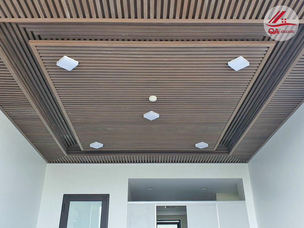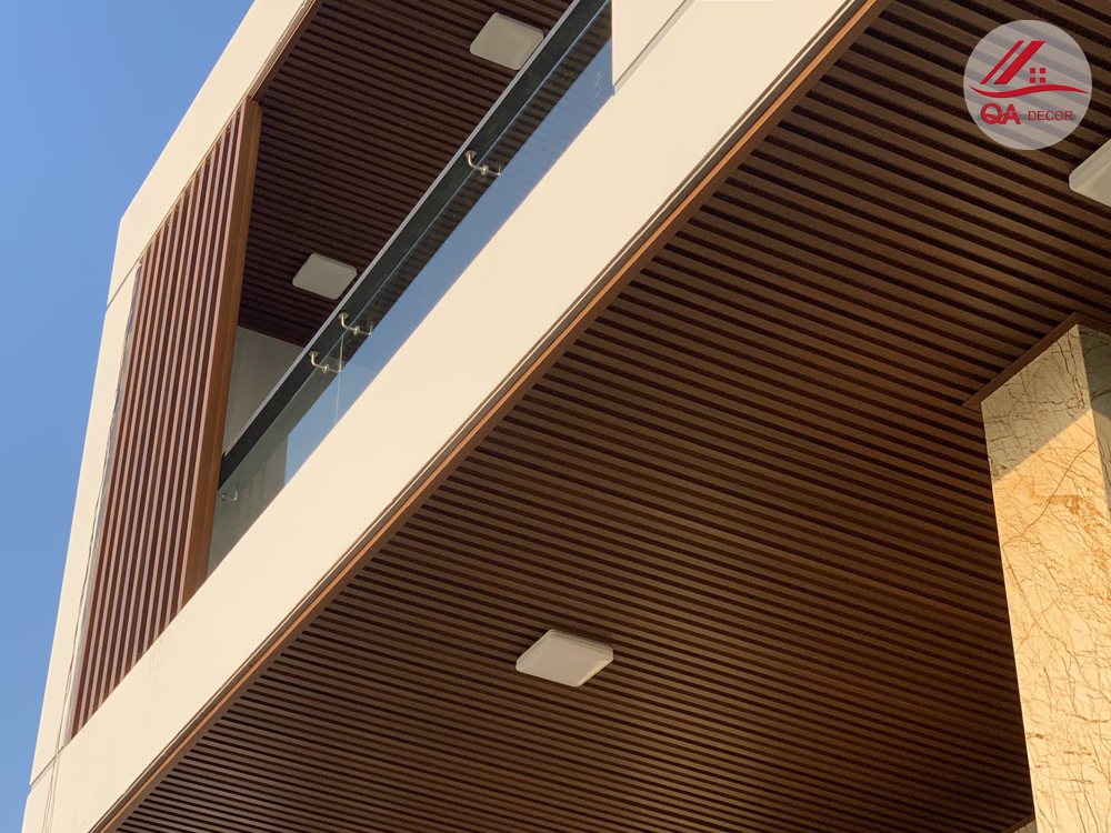 - Tấm ốp lam sóng gỗ nhựa ngoài trời: Dùng ở mặt tiền, trần ban công, cột ngoài nhà – chịu được nắng mưa.