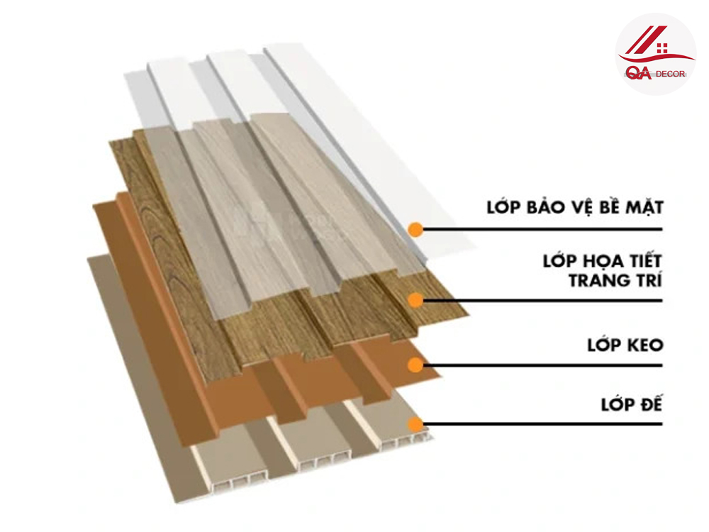 Tấm ốp lam sóng được thiết kế với cấu trúc 4 lớp riêng biệt, mỗi lớp đóng một vai trò quan trọng trong việc đảm bảo tính thẩm mỹ, độ bền và hiệu suất sử dụng lâu dài: