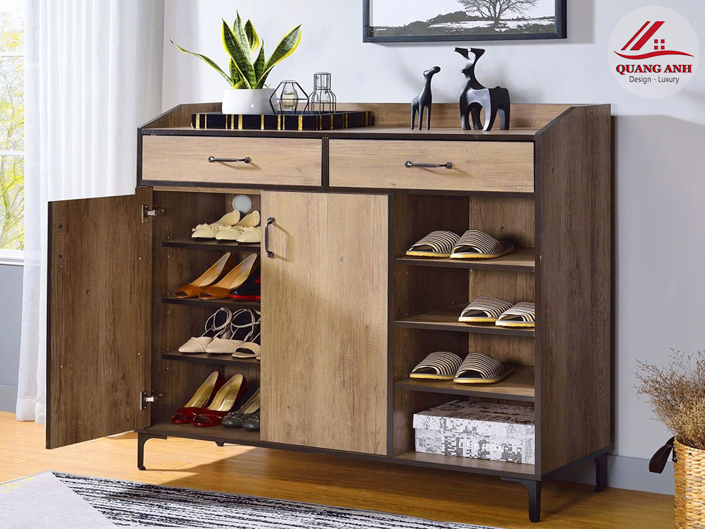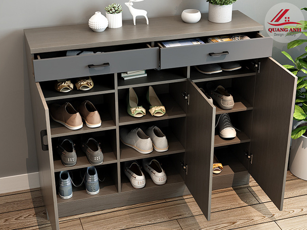 Tủ giày dép gỗ công nghiệp ngày nay không chỉ đóng vai trò lưu trữ giày dép gọn gàng, giúp bảo vệ chúng khỏi bụi bẩn, ẩm mốc hay mùi khó chịu do tác động của môi trường, mà còn được xem như một điểm nhấn thẩm mỹ trong thiết kế nội thất hiện đại. Việc bố trí tủ giày ở phòng khách hoặc khu vực gần cửa ra vào không chỉ mang lại sự tiện lợi trong sinh hoạt mà còn giúp không gian thêm gọn gàng, tinh tế. Trước khi chọn mua, bạn nên chú trọng đến kích thước và kiểu dáng, đảm bảo sự hài hòa với tổng thể ngôi nhà.