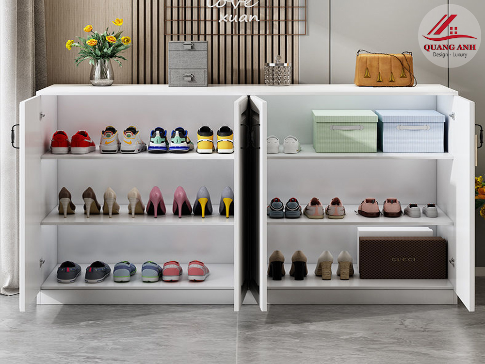 Sau khi đã hiểu rõ về công năng, chất liệu và những yếu tố cần lưu ý khi lựa chọn, hãy cùng Quang Anh Decor khám phá các mẫu tủ giày đẹp, hiện đại và tiện dụng đang được ưa chuộng nhất hiện nay. Mỗi thiết kế đều mang phong cách riêng – từ đơn giản, tinh tế đến sang trọng, đẳng cấp – đáp ứng đa dạng nhu cầu thẩm mỹ và không gian sống của từng gia đình.